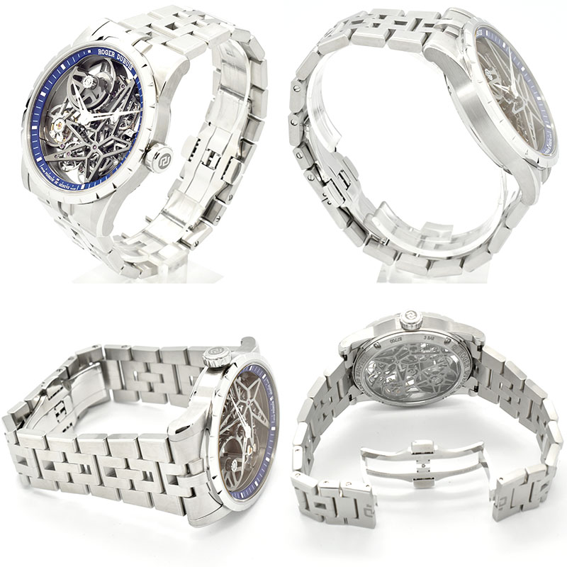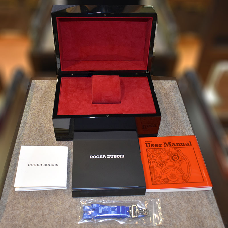 | 店長メモ | 【日本28本限定】マイクロローターを搭載した美しいムーブメントを余す所無く表からも裏からも堪能できるお時計です。一度目にしたら見入ってしまうその大胆なデザインは、ロジェデュブイというブランドをとても良く体現しているといえます。日本28本限定と滅多にお目にかかれないモデルなので、是非一度お手にとってご覧ください。/50m防水 |