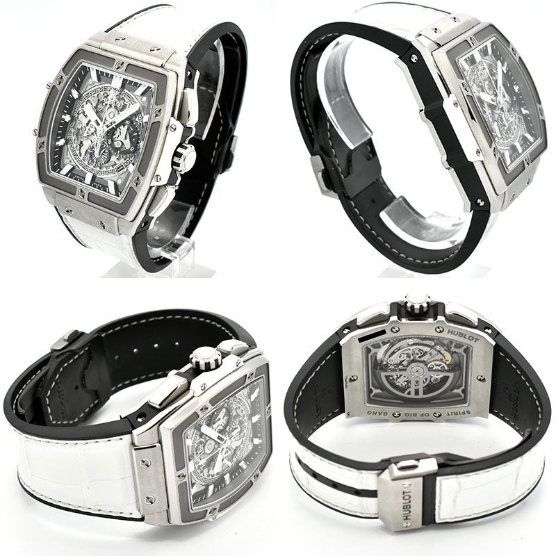| 店長メモ | 【日本限定】 従来のウブロとは異なる全く新しいトノーケースを備えた”スピリット オブ ビッグバン” その名前からも分かるとおりウブロの魂は受け継がれ、ムーブメントにはゼニスの名機エル・プリメロをベースに作られた「HUB4700」を搭載しています。 こちらはインデックスやプッシュボタン、ベルトをホワイトで統一した日本限定モデルです。/100m防水 |