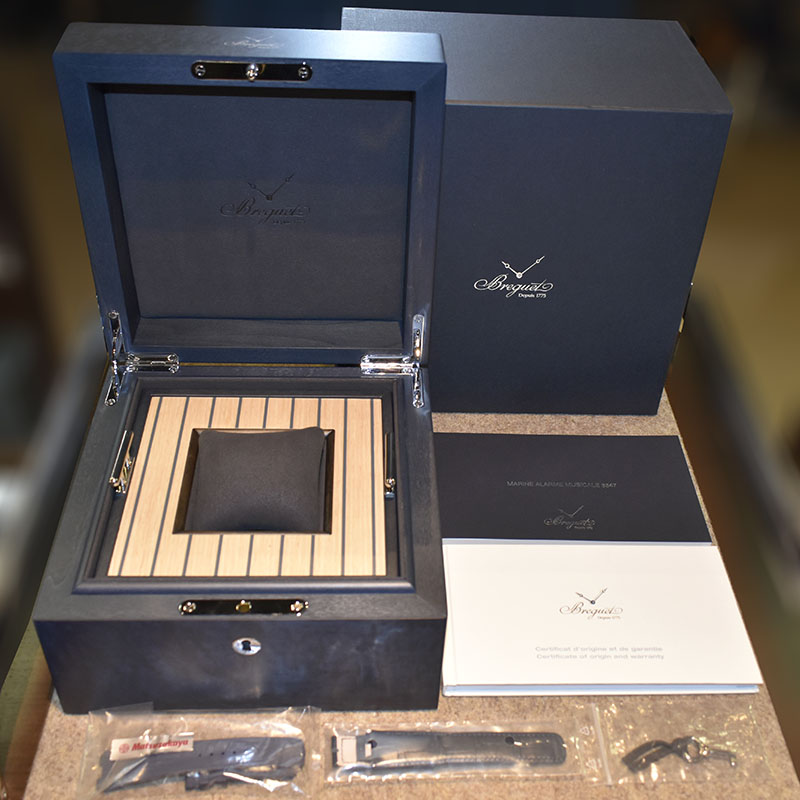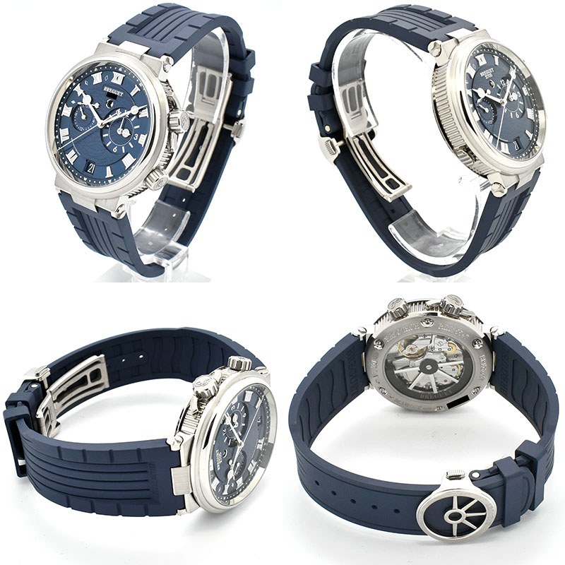 | 店長メモ | 【2018年新作】 文字盤には波模様のギョーシェ彫りを施し、秒針の後端には国際海洋信号旗の"B"のモチーフがあしらわれたクラシック&スポーツな仕上がりです。 こちらにはオンオフ設定も可能なアラーム機能が搭載されバックルには舵のデザインが採用されており、ブレゲらしい細部にまでこだわり抜かれたモデルです。/50m防水 |