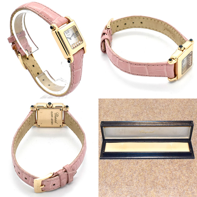 | 店長メモ | ショパールらしいかわいらしさと高級感がバランスよく調和され、5ポイントのムービングダイヤがお洒落なモデルです。 |