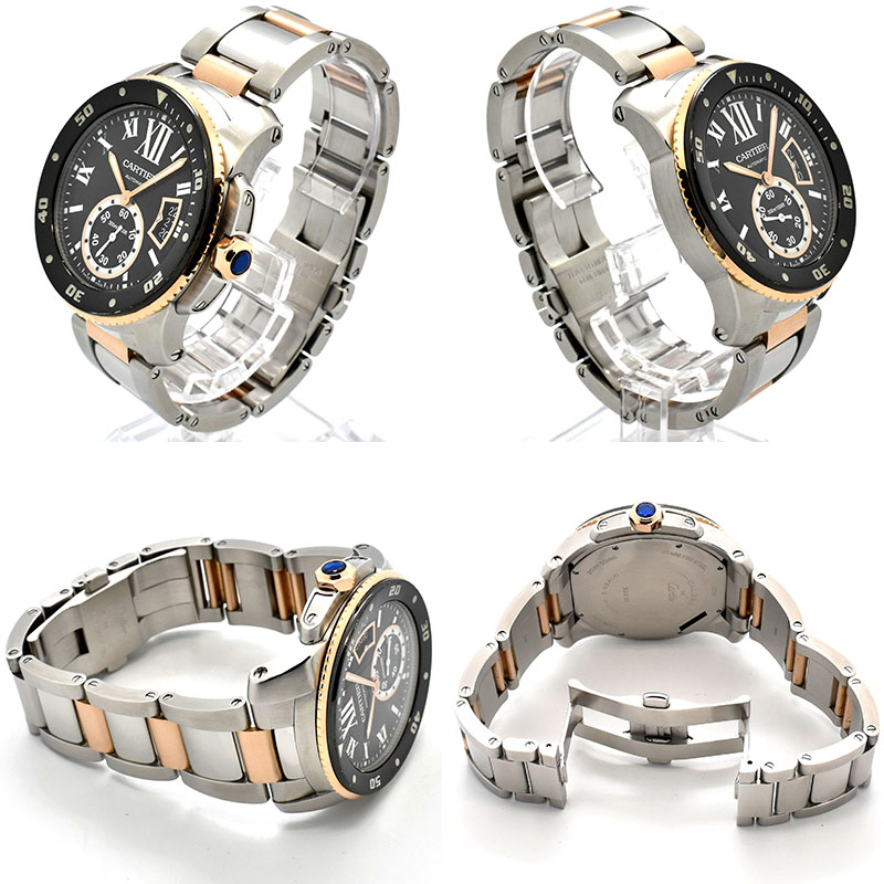 | 店長コメント | 自社開発ムーブメント「Cal.1904MC」搭載し、300mの防水性能を誇るカリブルダイバーです。 カルティエらしい繊細なデザインと高い機能性の融合です。 ピンクゴールドのベゼルが、高級感を漂わせております。 |