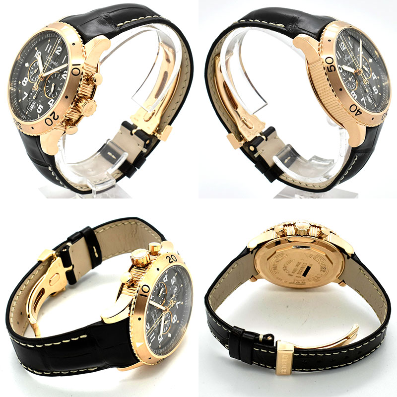| 店長メモ | フライバック機能付き自動巻きクロノグラフ/K18ピンクゴールドケース/100m防水/デイト表示/クロコベルト/ホールディングバックル/回転ベゼル |