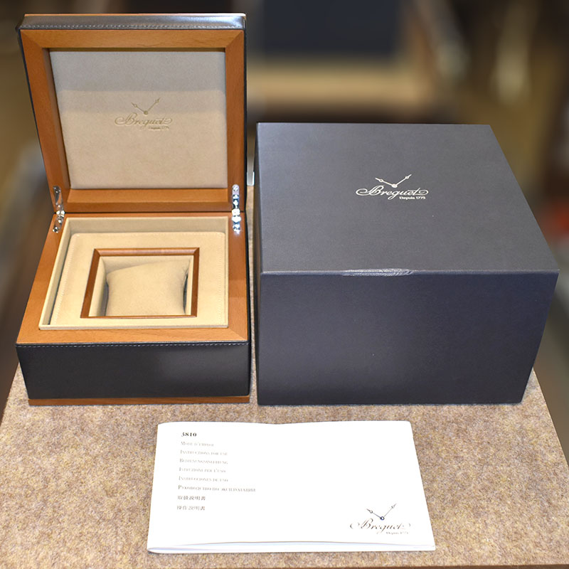 | 店長メモ | 従来のモデルよりも一回りケースアップされ、グレーカラーのダイヤルに視認性のよいアラビア数字を組み合わせ、フライバック機能も備えています。 まさに名門の名に恥じない名品で、ブレゲのロングセラーモデルの一つです。 |