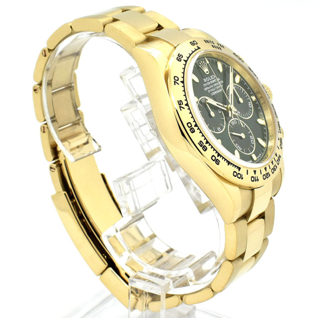 | 店長メモ | イエローゴールドケースにロレックスのコーポレートカラーでもあるグリーンダイアルを組み合わせたデイトナです。 元々の流通量が非常に少なく希少なモデルな上、生産終了になった事でその人気に益々拍車が掛かった印象です。 お探しされていた方はお早目のお問合せをお薦め致します。/100m防水 |