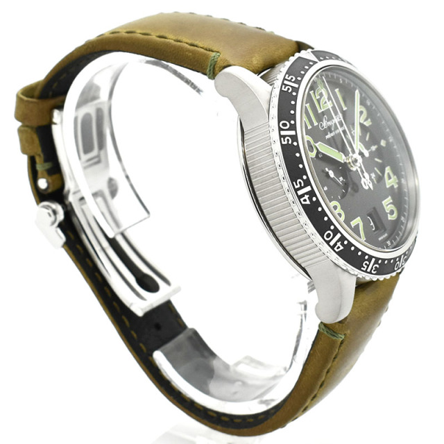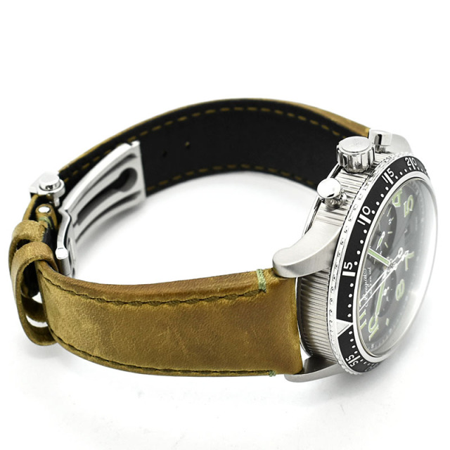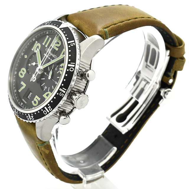 | 店長メモ | 【世界250本限定】 フライバック機能付きのクロノグラフムーブメント「キャリバー584Q/A」を搭載し、インデックスや針に採用されたグリーンカラーが大変目を引かれるユニークなデザインです。 |