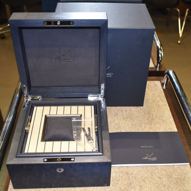 | 店長メモ | 文字盤には波模様のギョーシェ彫りを施し、秒針の後端には国際海洋信号旗の"B"のモチーフがあしらわれたクラシック&スポーツなモデルとなっています。/100m防水 |