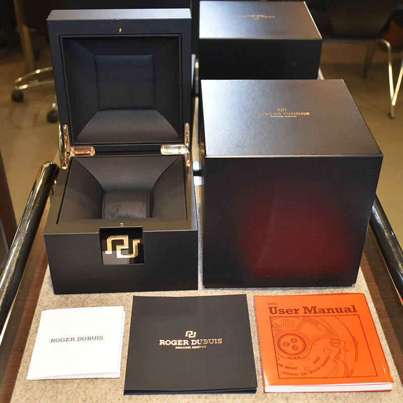 | 店長メモ | 45mmのチタンケースにラバーストラップを組み合わせた、スポーティと高級感が見事に融合されたロジェデュブイらしいモデルです。 |