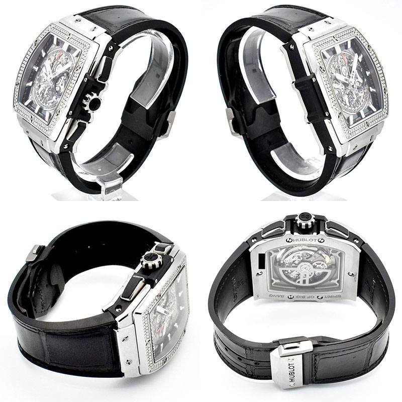 | 店長メモ | 従来のウブロとは異なる全く新しいトノーケースを備えた”スピリット オブ ビッグバン” しかし、その名前からも分るとおり、ウブロの魂は受け継がれております。 ムーブメントにはウブロとゼニスがコラボレートして作られた「HUB4700」を搭載。 名機エル・プリメロをベースに作られ、ウブロの新しい歴史の幕が上がりました。 こちらはベゼルダイヤ仕様のラグジュアリーなモデルです。/100m防水 |