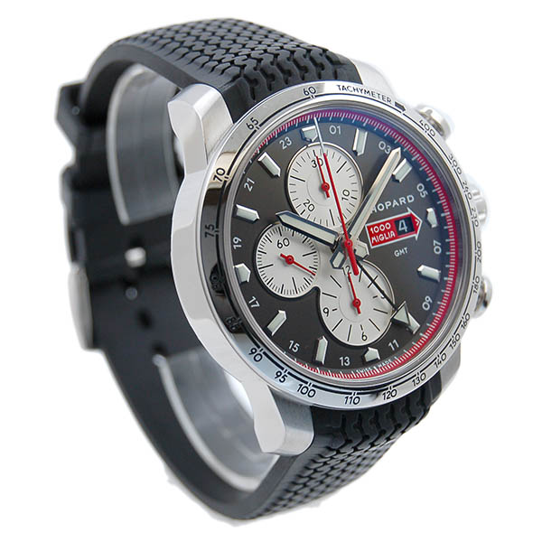 | 店長メモ | 【2013年限定シリーズ】伝説のカーレース「ミッレミリア」をオマージュして発売される限定シリーズの2013年モデルです。GMT機能とクロノグラフ機能を搭載したハイスペッククロノグラフです。プッシュボタンはエンジンのピストンをイメージしています。人間工学に基づいた機能性と洗練されたデザインが魅力の1本です。 |