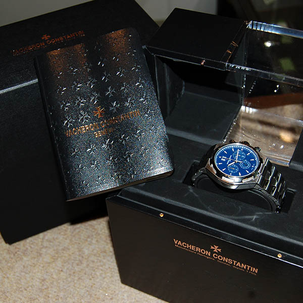| 店長メモ | ヴァシュロンを代表するスポーツクロノグラフです。防水性能は150mでデイト表示、サファイアガラス仕様となります。腕周りは19cmまで対応可能です。鮮やかなブルーが映える1本です! |
