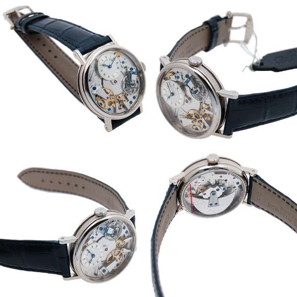 | 店長メモ | 一目見て高級時計とすぐわかる存在感はさすがブレゲです。クラシカルな雰囲気ですが、レトログラードのスモールセコンドや両面から覗けるムーブメントの緻密さにはただただ圧倒されます。 |