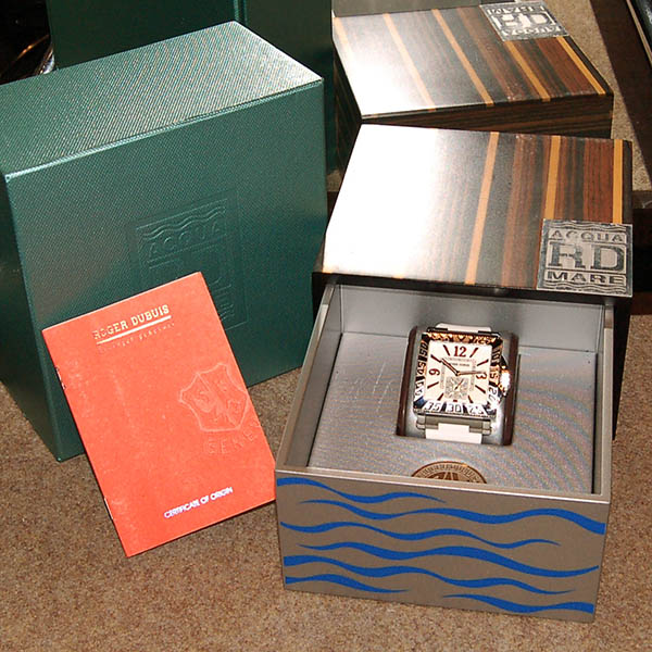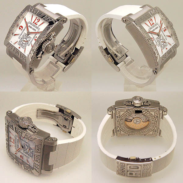 | 店長メモ | 【世界888本限定】ゴールデンスクエアーがベースになっているアクアマーレはスクエアケース、バックスケルトンと言う仕様ながらも300mもの防水性を誇るハイスペックモデル。 |