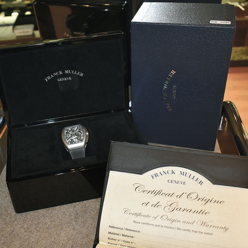 | 店長メモ | 立体的な文字盤とフランクミュラーらしい流線的なフォルムは必見です。こちらは珍しいカモフラージュダイヤルになります。/日常生活防水 |