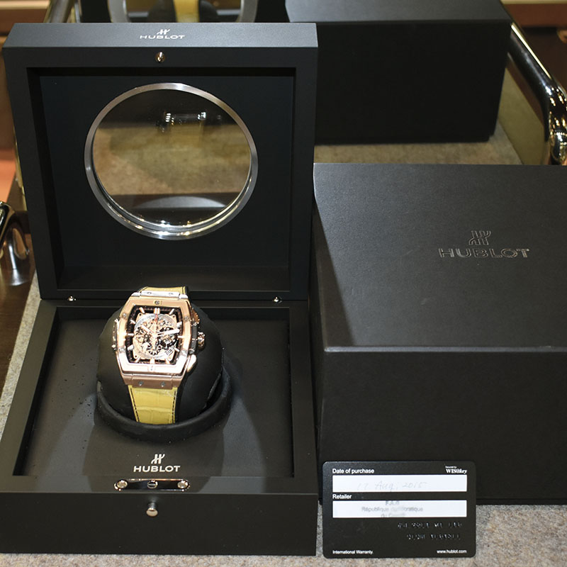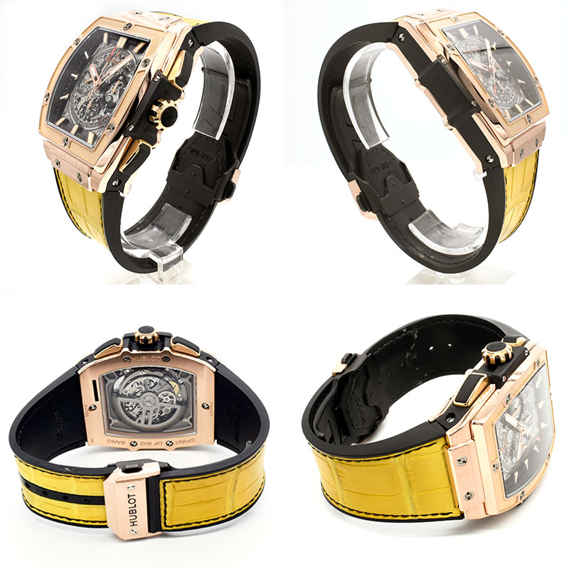 | 店長メモ | 従来のウブロとは異なる全く新しいトノーケースを備えた”スピリット オブ ビッグバン”。 モデル名からも分る通りウブロの魂は受け継がれ、ムーブメントにはウブロとゼニスがコラボレートして作られた「HUB4700」を搭載。 名機エル・プリメロをベースに作られ、ウブロの新しい歴史の幕が上がりました。このモデルにはキングゴールドが採用されており、より高級感のある1本です。/100m防水 |