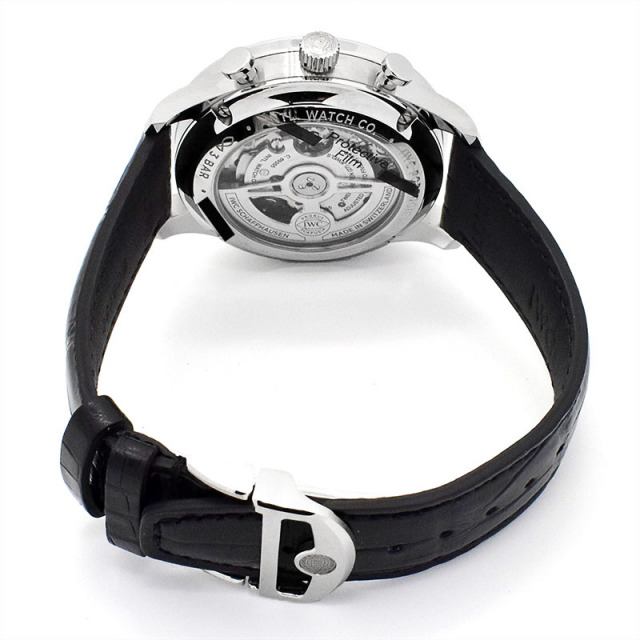 完成されたデザイン等のポルトギーゼの核となる部分はそのままに、自社製ムーブメント"キャリバー69355"を搭載し、その機械美を鑑賞できるようにケースバックがスケルトン仕様になっています。 バックルも片側開きから観音開きに改良されました。 |