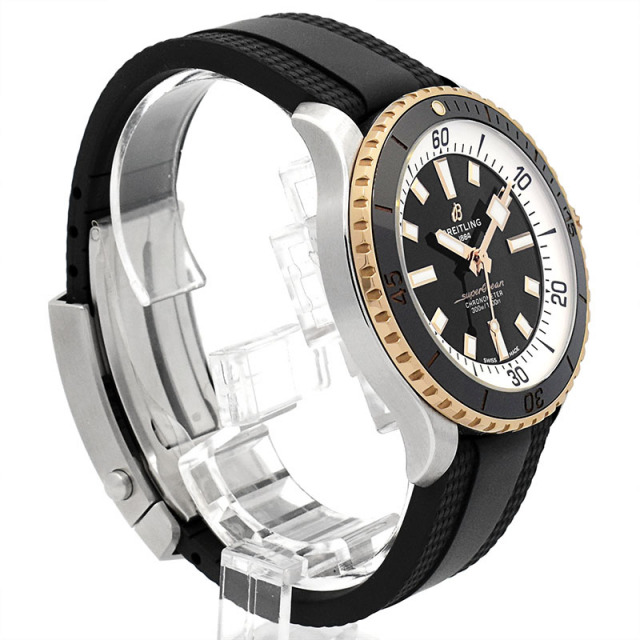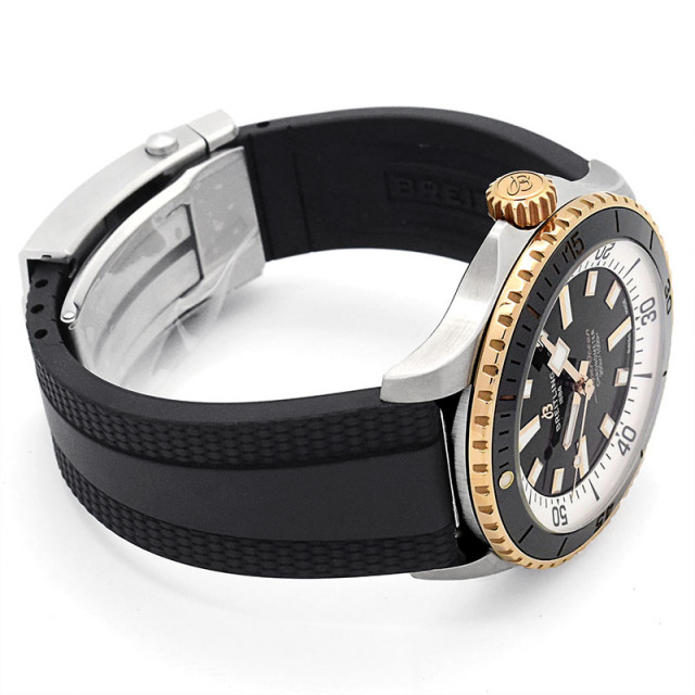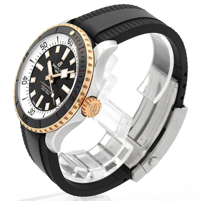歴代のスーパーオーシャンのデザインを活用した新しいスーパーオーシャンコレクションです。 こちらはレッドゴールドのベゼルとリューズが印象的で、ビジネスからカジュアルな装いまで幅広く活躍してくれるデザインです。 *ラバーベルトをカットして調整を行うモデルのため、配送での調整は対応出来ません。 |