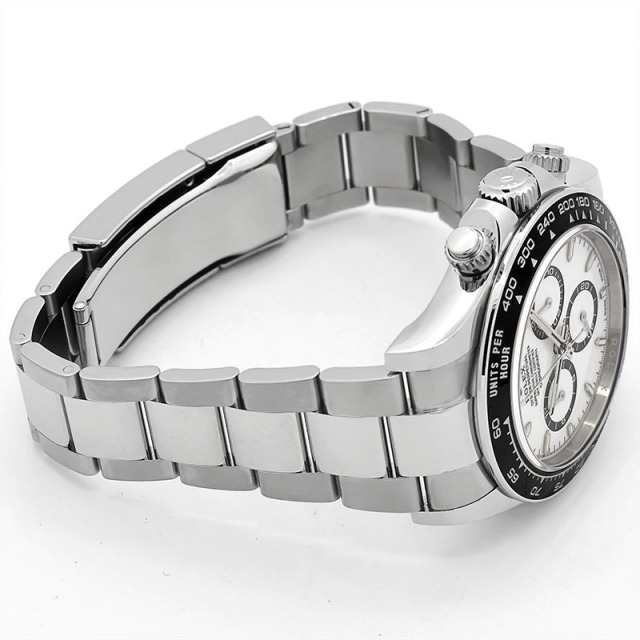 前モデルのRef.116500LNと比較してベゼルの縁がメタルになり、インデックスやインダイヤルがシャープな印象となりました。 6時位置のSWISSとMADEの間に王冠マークが配され、ムーブメントにはCal.4131が搭載されています。 |